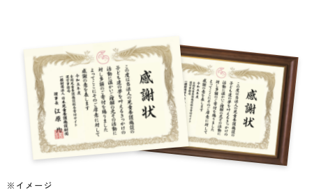 - 日本児童養護施設財団から「感謝状額縁付き」を贈呈